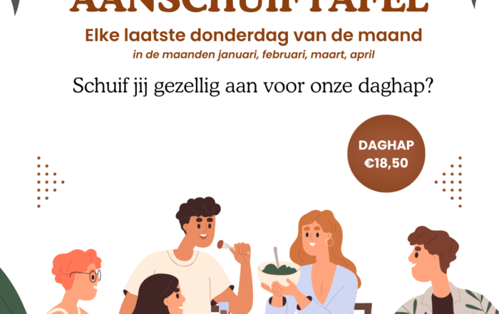 Samen eten is leuker! Daarom organiseren we bij De Kroonprins een gezellige aanschuiftafel. Elke laatste donderdag van de maand in januari, februari, maart en april! [...]