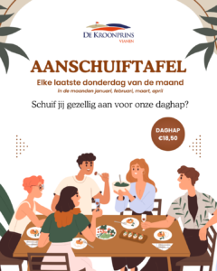 Daarom organiseren we bij De Kroonprins een gezellige aanschuiftafel. Elke laatste donderdag van de maand in januari, februari, maart en april!