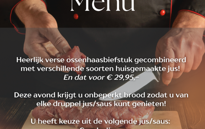 Biefstukavond – Elke donderdag! Een klassieke biefstukavond op de Kroonprins! Elke donderdag vanaf 17:00 biefstukavond op De Kroonprins. Geniet van malse ossenhaasbiefstuk, geserveerd met verschillende [...]